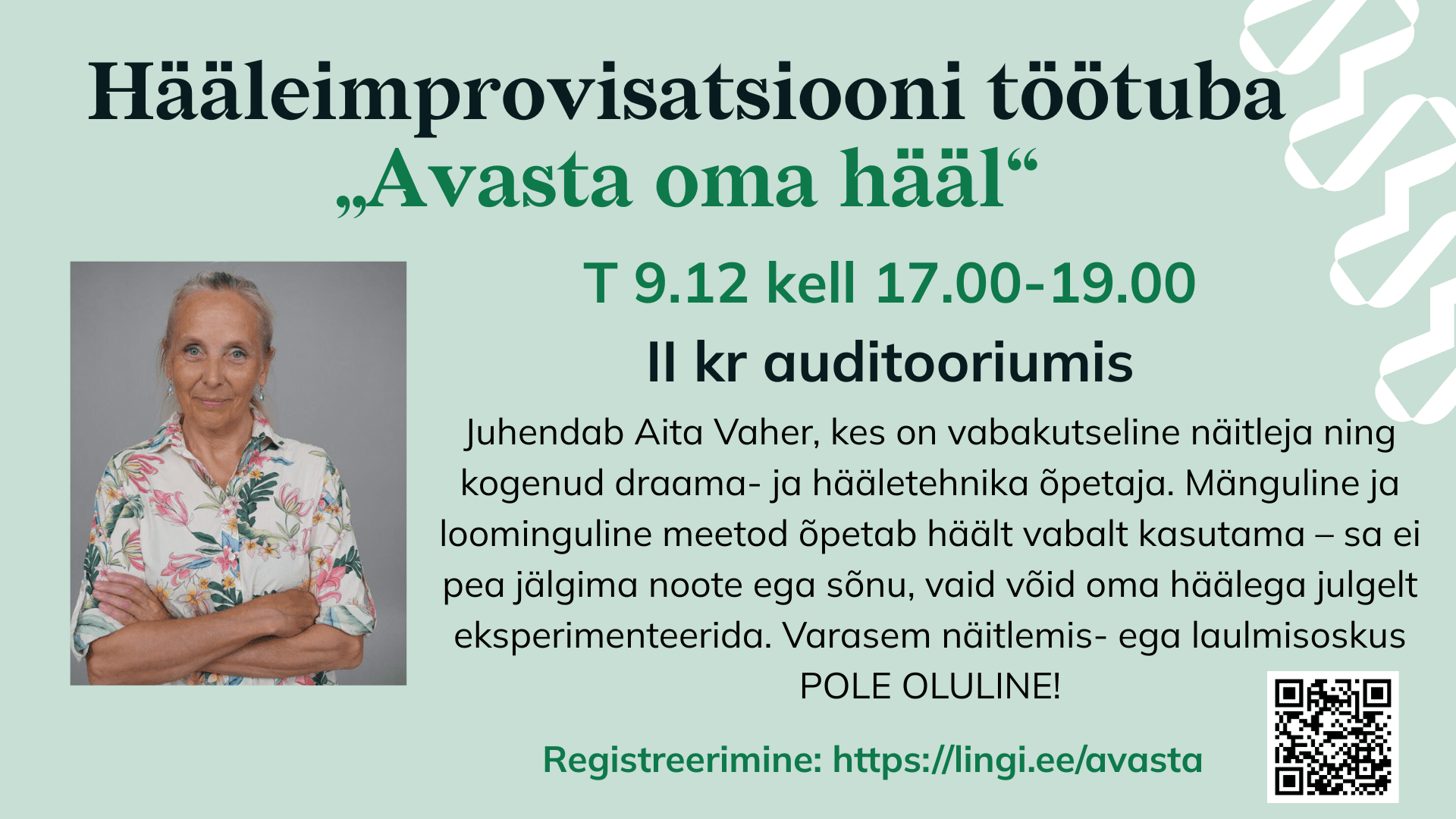 Hääleimprovisatsiooni töötuba „Avasta oma hääl“ Aita Vaheriga